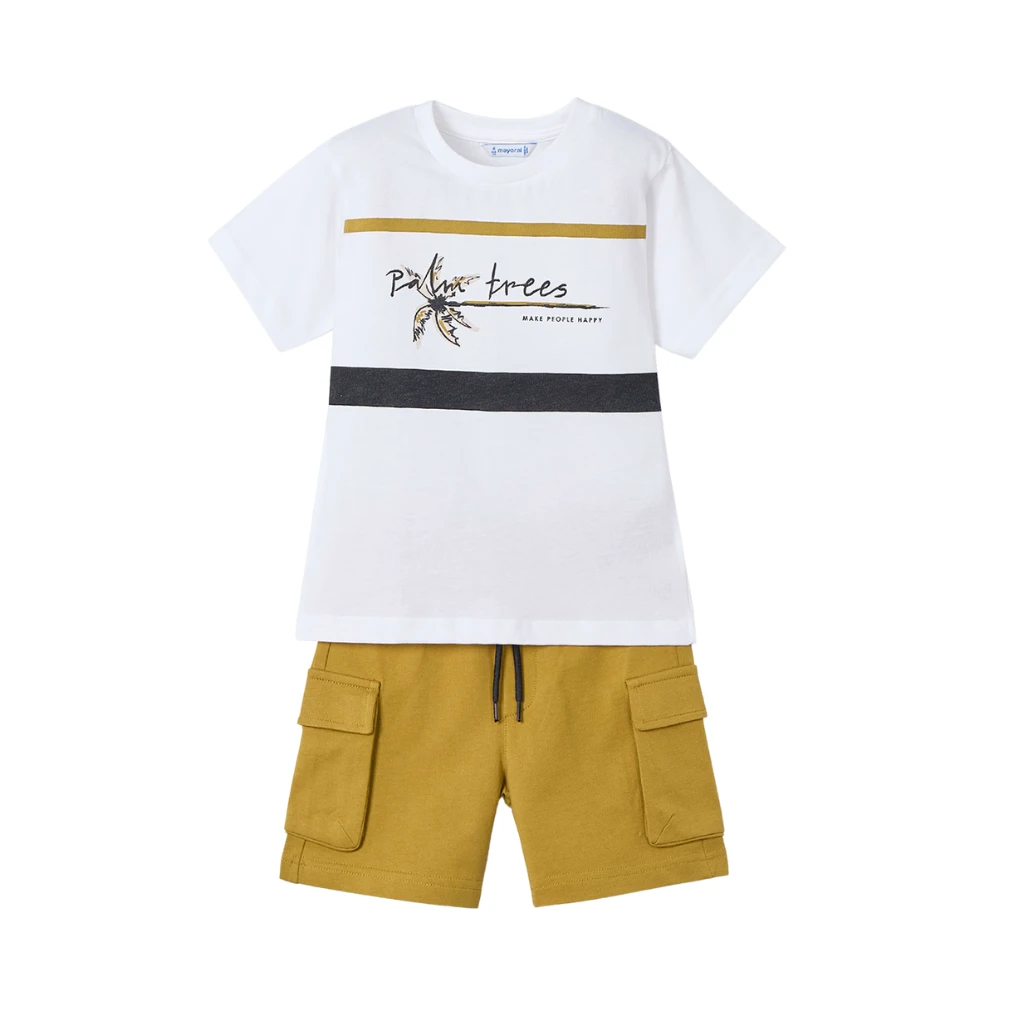 MAYORAL chlapecké tričko KR a kraťasy bílá, okrová vel. 122 cm