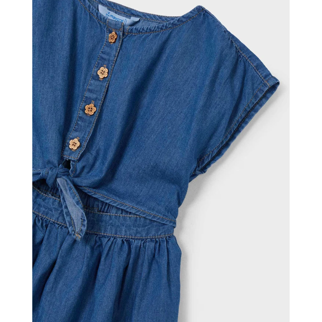MAYORAL dívčí šaty denim bez rukávu s knoflíky modrá