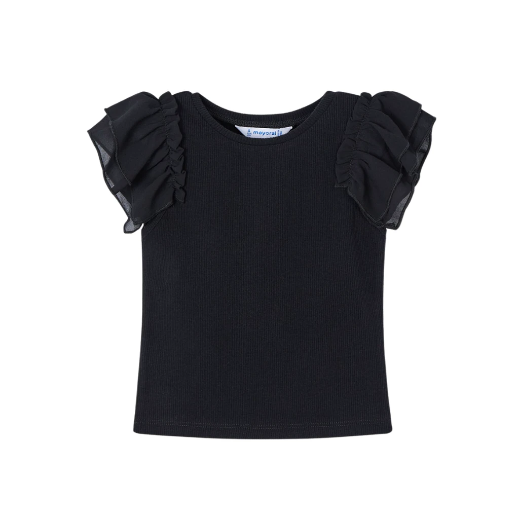 MAYORAL dívčí tričko KR se šifónovým volánem černá