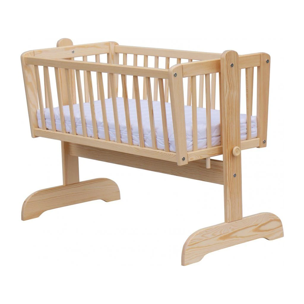 Krásná kolébka z borovicového dřeva je ideální pro usínání miminek.